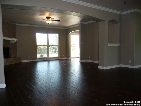 Beautiful home recently remodeled. 1st LR welcomes you, leads to 2nd LR & Kitchen. Custom wood cabinetry in Kitchen. 2nd LR with brick fireplace. BRs w/ updated closets. Bathrooms welcome you. Enjoy upgrades including granite c-tops, hardwood floors, c-tile, carpet, accent lighting, crown molding, b-boards, doors/frames, texture, hardware, fixtures, & interior paint. New windows, electrical, & roof. Enjoy good-size backyard w/ a shed. Close to Randolph AFB, Fort Sam, SAMMC, Rackspace, I-35, 1604, and I-410.