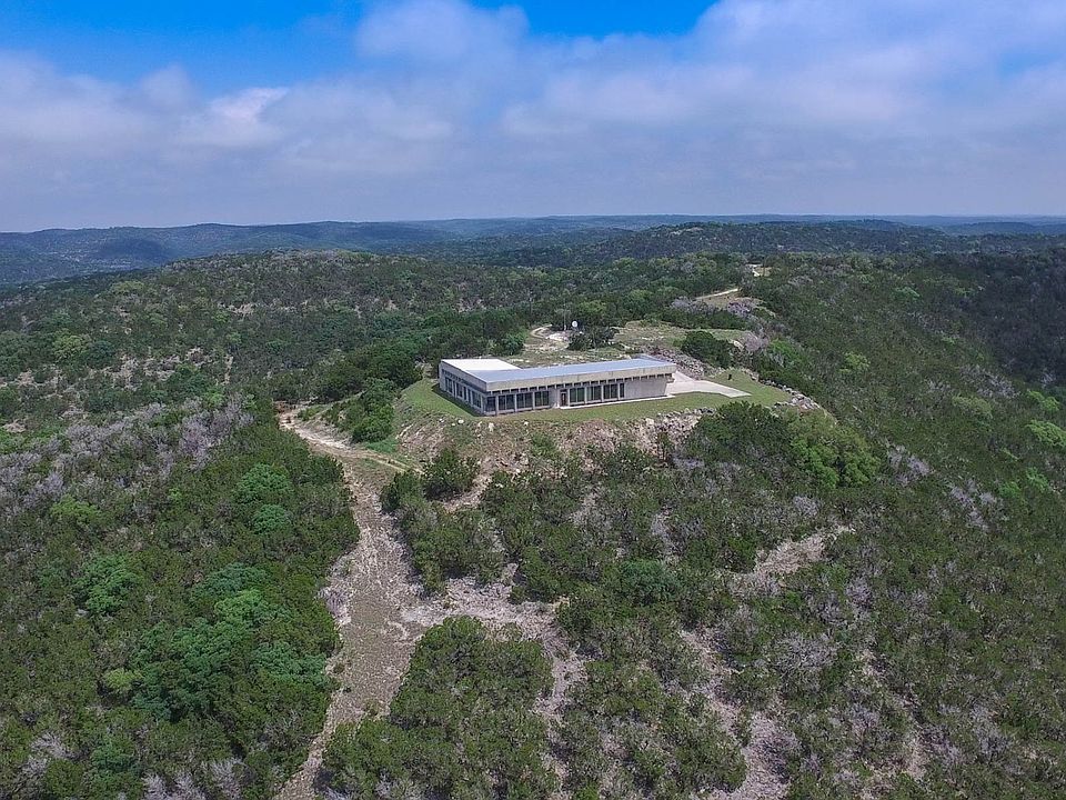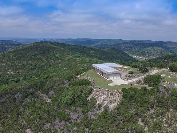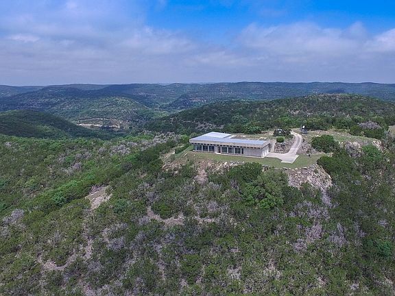 Rare offering of a custom-designed contemporary retreat built into the side of a mountaintop on 42 acres along scenic FM-337 between Leakey & Vanderpool, TX, with spectacular, panoramic views for miles of the surrounding Texas Hill Country wilderness. This large-scale luxury home is the ultimate get-away escape, where you can watch glorious sunrises peek over the eastern hills and gorgeous sunsets descend over the western hills and valleys from your windows. The exterior walls of this earth-sheltered engineering marvel are composed of 9-ft-high, double-paned glass windows, and the ceilings soar to a height of over 13 feet. This green dwelling was designed for optimum energy-efficiency and maximum utility bill savings. The house contains over 3,700 square feet of air-conditioned/heated living space. While a structural engineer and an architect designed the home with many uniquestructural features, the buyer will be able to add their own custom touches to finish the home to their own decorating tastes and lifestyle needs. The L-shaped house (see floor plan below) offers breathtaking window vistas from every room of the surrounding Hill Country that you can enjoy while entertaining, cooking, dining, sleeping, showering, or even working. A huge, open Great Room provides a picture-perfect setting for serene, private pursuits or entertaining family and friends. The very large owners' suite, located in its own separate wing, offers magnificent views from the bed and sitting area to an open shower and a space created for a sunken bath spa. The suite features a convenient laundry room and oversize walk-in closet. In addition to a second bedroom and bath, there are two large rooms with closets off the Great Room suitable for third and fourth bedrooms--or offices or artist studios. A bonus room could be used for secure storage or a wine cellar. The large 800-sq ft 3-car+ garage is a car collector's or hobbyist's dream! The property also has private walking trails with birds and other wildlife as well as areas that can be utilized for family recreational activities. The property is accessed through a private, gated entrance set off from a scenic state road, and has its own quarter-mile long private road to the dwelling. It is located near Garner State Park and Lost Maples State Park in one of the most beautiful and highly desirable area of Texas-one noted for its dramatic and gorgeous scenery; crystal-clear rivers; abundant deer, birds and other wildlife; and verdant hills thickly covered with cedar and live oaks. Yet, the area is an easy drive to music, arts & crafts, food & wine festivals and restaurants in nearby tourist and resort destinations. The property is about a 90-minute-drive from San Antonio, two and 3/4 hours from Austin, and four and 1/4 hours from Houston, but it is only a 10-minute drive from the county airport. Please see floor plan for details