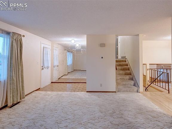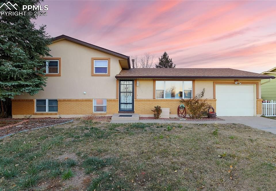 Great property close to shopping, parks, and trails! Target is just around the corner! Peterson Air Force Base is extremely close, and would be an easy commute. Three bedrooms upstairs along with a full bath. Main level has oak flooring throughout the kitchen and dining area. Host a large family dinner in the extended dining area off of the kitchen and after, cozy up by the fireplace in the lower level. This home, although dated is structurally sound, and left very clean from the previous owner.