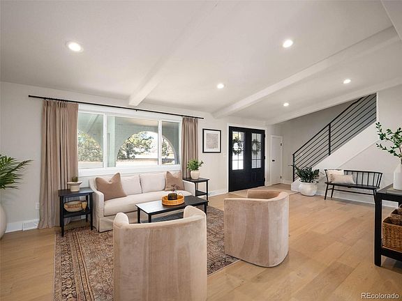 Welcome to your dream home…a white brick exterior, lush landscaping and modern double front doors create a captivating first impression, willing you to see what else this home has to offer. A picturesque front porch provides southwest-facing views of the park across the street. You are invited into a fully remodeled interior, sleek and refined, you will notice that no detail has been overlooked. Elegant in design, white oak engineered hardwood flooring runs through the main and upper levels of the home. Perfectly accented with neutral-colored walls, there is a cozy and welcoming ambiance. Off the entry is a living room and dining room that wrap around to the bright & stylish kitchen – with light gray cabinets, white Quartz countertops, stainless steel appliances and a chic square tiled backsplash. The lower level offers a spacious family room with delightful wood burning fireplace and features a custom built-in bench that doubles as storage. A ½ bath + laundry room round out the main living space and boasts black hexagon tile, popular board and batten walls, subtle gold accents, stackable high efficiency washer/dryer and built-in storage to include a laundry folding counter. Upstairs you will find the primary bedroom with en-suite ¾ bath, 2 additional bedrooms and a full bathroom. The upstairs demonstrates the same thoughtful and sophisticated design style. The basement offers a 4th bedroom currently used as an office and an additional living room that could function as a playroom, in-home gym, or media room. The backyard received extensive landscaping and hardscaping to include a new patio, stone pathway, lavish plants/bushes to line the fence and new lighting! With the covered patio offering reprieve on those hot summer days, this will become your favorite place to unwind or gather with friends/family. In sought-after Ridgeview Hills, you are located within esteemed Littleton Public Schools District and afforded quick access to all your favorite amenities.