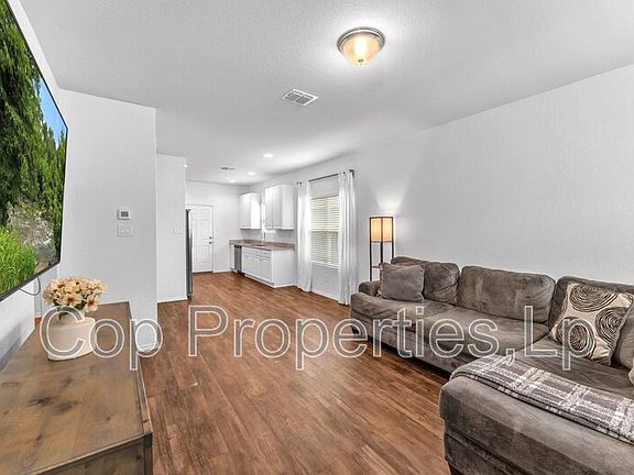 This is a fabulous three-bedroom, two-bath home. It is still within the homebuilder's warranty period. The huge backyard with a privacy fence is excellent for entertaining pets and quiet days/evenings. There is also an oversized two-car garage. The home has been well cared for and maintained. Neighborhood amenities include a pool, playground, and soccer field. It is close to JBSA Randolph (15 minutes) and Brooks Army Medical Center (13 minutes). Exclusions: Water Filtration System and Security System.