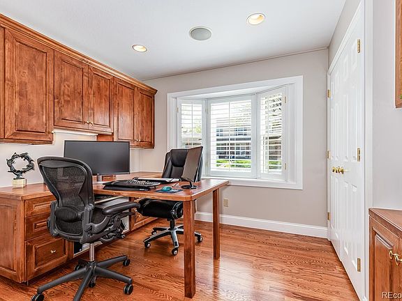 Incredible opportunity to live in the premier community of Homestead! This expanded Putman model has been remodeled several times! Pride of ownership shows with all additional special features throughout this gorgeous home! Entertainers dream perfect for entertaining both indoor and outdoor, speaker's main level and outside Beautiful hardwood floors! Main level study with built-in desk, cabinets, and shelves. Formal living room with raised ceiling, crown molding, dining room with raised ceiling adjoining quiet covered outdoor patio space with fireplace. Enjoy our beautiful Colorado evenings and stay warm on the cool nights with this relaxing space. Gourmet kitchen showcasing refrigerator, double oven, microwave, dishwasher, large pantry, awesome center island with granite top, second sink, ice maker, trash compactor, and electrical pop up outlet, vaulted ceiling with expanded eating space with large windows, an abundance of natural light, beveled high end sliding glass door. Plantation shutters throughout. Step down into the family room with a gas fireplace, wet bar, two wine coolers, wine cabinets, and dishwasher. Designer laundry room, laundry shoot, custom built-ins for all your supplies, tools, wall ironing board is a dream come true for a family that wants to be organized with all these secret storage compartments in the baseboards. Amazing back yard with built-in outdoor kitchen, gas grill, cooktop, and refrigerator, almost 1100 sq. ft. deck across the back of the house, custom landscaping with waterfall and pond. Relax in the large Master Suite with the raised ceiling with accent lighting, remodeled 5-piece bathroom, steam shower, soaker tub, radiant heat floors, walk-in closet. 3 additional bedrooms upstairs, two full baths one with jetted tub, attic fan to cool the upstairs, 2 car attached garage with epoxy floors and built-in cabinets, 1 yr home warranty, short walk to pool and tennis courts and miles of hiking and biking on South Suburban Trails System