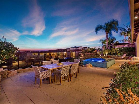 RARE LA COSTA OAKS OCEAN VIEW HOME!! - a luxurious sanctuary sitting on a breathtaking WEST facing panoramic OCEAN view lot. This home offers arguably the best view in La Costa Oaks with ocean views, sunsets, canyon and mountains. The light & bright rare open floor plan includes the primary suite, spa inspired bath and oversized walk in closet on the main level as well as a secondary bedroom with en suite bathroom on main level. This home lives like a single story. Additionally upstairs you will find a bonus loft, and three other bedrooms with two baths, one en suite. Stunning upgrades include; luxury wide plank flooring, custom window coverings, and oversized entertaining refrigerator and freezer. The private entertainers yard offers even more with spectacular ocean/lagoon views, oversized salt water spa, BBQ grill island, raised garden beds on side yard with fruit trees. La Costa Oaks is located near shops, restaurants, offers great hiking trails, two pools, a club house, fitness center and more! Located in the top rated San Dieguito/Encinitas school district.