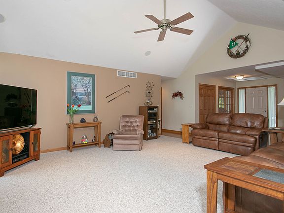Enjoy all the custom features this beautiful home on the golf course has to offer. Built by Dwight Swanson. Great room plan with cathedral ceiling, gas log fireplace, and lots of windows for golf course views. Split bedroom floor plan. Finished, walk-out lower level includes 4th bedroom, full bath, kitchenette, recreation room, & exercise room. Main floor laundry. Screened porch. 2 patios. A must see!