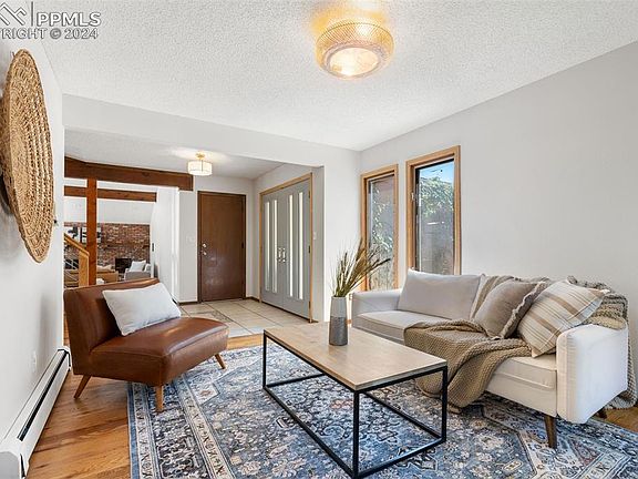 Nestled in the sought-after Rockrimmon area of Colorado Springs, this custom-built home combines classic charm with modern comforts. One of the neighborhood's most unique and special homes, this residence offers four bedrooms, four bathrooms, and a primary suite featuring built-in bookshelves and an adjacent upper-level laundry room. The recently updated kitchen serves as the heart of the home, seamlessly blending contemporary finishes with original details. Expansive windows and sliding glass doors flood the living room and kitchen with natural light, providing tranquil views of the backyard oasis. Outside, a spacious backyard retreat awaits, bordered by a creek frequented by local wildlife. A backyard treehouse adds an element of adventure for all ages. Additional amenities include a heated three-car garage with tons of storage, two wood burning fireplaces, a wet bar in the basement -perfect for entertaining- and close proximity to all Colorado Springs has to offer. Experience the perfect balance of comfort and convenience in this unique property.