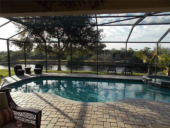 Beautiful lake view! Immaculate home with lots of upgrades, well loved, with the perfect setting & it can be your personal paradise now. Boasting a popular open floor plan, it features 3 bedrooms, 2 baths, den, pool & 2-car garage. Upgraded landscaping,cathedral ceilings, granite countertops and backsplash, wood cabinets, recessed lighting with dimmer switches. Paver driveway, patio, lanai, and pool deck... Located in popular University Parkway corridor, with easy access to downtown, the beaches and loads of dining and shopping at hand. Come make every day a vacation!