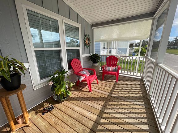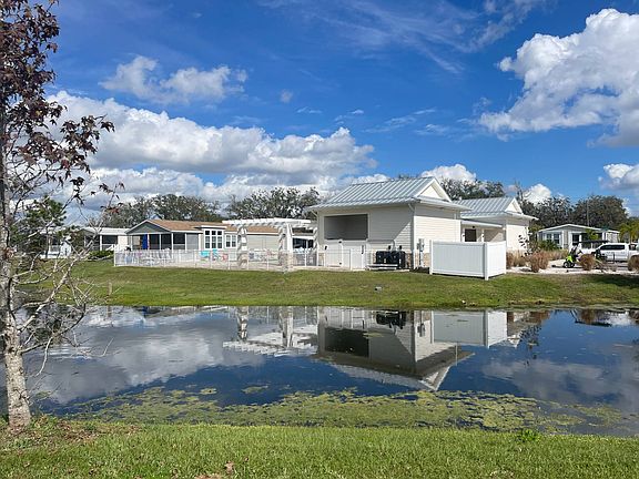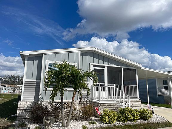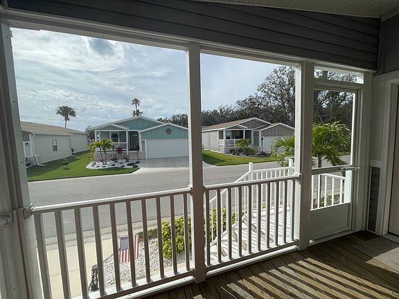 7128 Bartlett Court, Ellenton FL Colony Cove - The Oaks 55+, Pet Friendly, Gated Community This is a manufactured home for sale on a rented/leased lot. This 3 BR/2BA home is a 2020 model and a great place to entertain friends and family! Watch the world go by from the front screened lanai! The home comes unfurnished and ready for you to make your own... There is luxury vinyl, plank flooring in the living, dining, kitchen, bathrooms and hallway areas. The home has vaulted ceilings, crown molding, transom windows, sheetrock walls, custom paint and wooden window valances. The kitchen has ample storage, composite counter tops, a pantry and energy efficient appliances. The kitchen island allows for plenty of space to spread out while cooking and entertaining or for use as a breakfast bar. The master suite has carpet and a private exit to the screened lanai with a water view. Check out the attendance at the pool across the pond to determine the best time to get some time in the sun! The master bedroom offers an en suite private bathroom with a walk-in glass and tile shower and a double vanity with porcelain sinks. A walk-in closet provides plenty of space for your wardrobe. The second and third bedrooms are carpeted with closets. There is an indoor washer/dryer (included in the sale) area with cabinets. The carport can park 2 cars tandem style. There is a shed and concrete pad in the back yard for grilling and chilling! The monthly base lot rent is $1,045 (plus pass pass thru charges of ~$75 in 2023 for water/sewer/trash). The monthly lot rent also includes lawn cutting, blowing and edging along with the community amenities.Colony Cove has been named 'Best Retirement Community' six years in a row by the Herald-Tribune of Bradenton and has a wealth of amenities designed to keep up with your active lifestyle. The Oaks at Colony Cove is a newer section of Colony Cove and offers a private, gated enclave with their own pool and clubhouse. Colony Cove residents enjoy a private marina with dry and wet boat slips, five spacious clubhouses, six heated swimming pools, pickle-ball and tennis courts, two fitness centers, two dog parks, billiards and much more! Florida MH Sales, LLC cannot guarantee or warrant the accuracy of this information, measurements or condition of any property. Measurements are approximate. All homes are sold "as is" and personal or professional inspection is encouraged. Lot rent is set by the community and is subject to change.