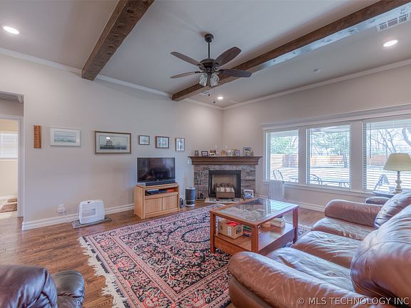 Welcome to this uniquely upgraded custom home.This property includes a large insulated and finished shop with a brick facade front exterior. Custom features includes: water softener & filter, half bath, tornado shelter, upgraded Privacy fence, custom blinds, extensive crown molding, beautiful wood beams, vaulted ceilings, custom kitchen cabinets, granite countertops, industrial sized built -in refrigerator, whole house generator. (18 KW, installed in January 2022), and Rain Bird sprinkler svstem. The shop has a commercial insulated door and a 50 amp hook-up for an RV. There are approximately $100,000 of upgrades and is located on a large lot. The backyard is very private with trees. Loaded with amenities! Must See!