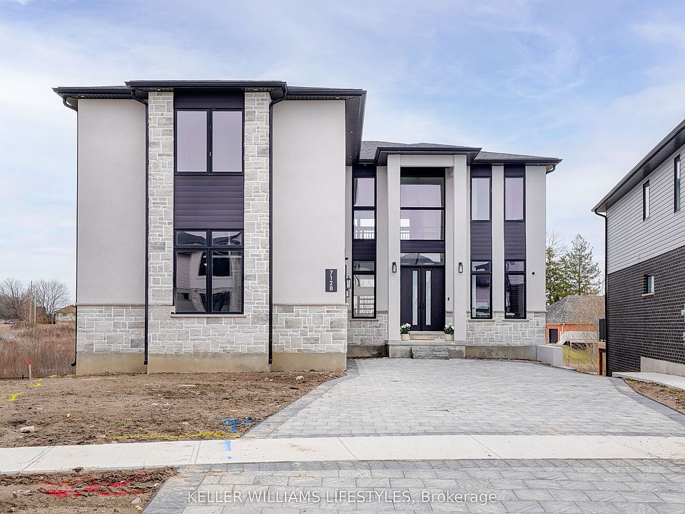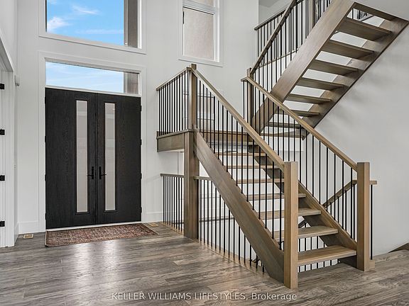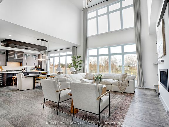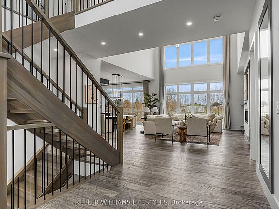 Welcome to this striking contemporary home offering over 3,800 sq. ft. of above-grade living plus a walk-out lower levelperfectly set on a premium lot backing onto a scenic stream and protected green space. Designed with dramatic architectural features, the home boasts soaring ceilings, oversized windows, a floating staircase, and high-end finishes throughout.The chefs kitchen features upscale Forno appliances, a waterfall island, full fridge/freezer, and a hidden pantry/prep area with a second dishwasher. The open-concept great room is anchored by a linear fireplace and built-in shelving, with direct access to a full-width deck overlooking the private backyard.Five spacious bedrooms include a luxurious primary retreat with a sitting area, walk-in dressing room, and spa-like ensuite. The lower level is an entertainers dream with a wet bar, wine storage, home theatre, gym, and bonus flex spaceall with walk-out access to a covered patio.Located minutes from trails, shopping, schools, and Hwy 401 access, this is modern luxury at its finest. Contact us today to learn more.