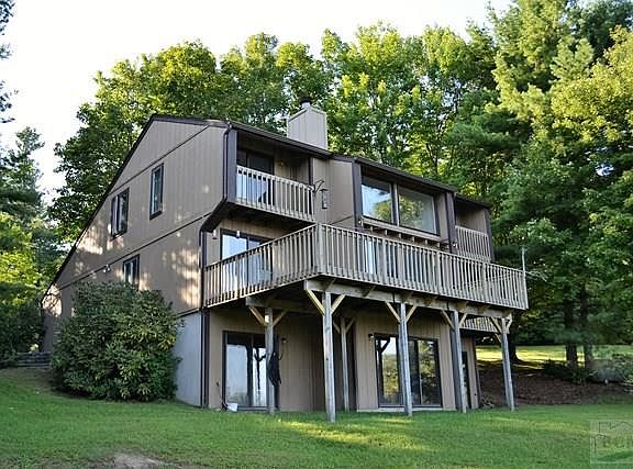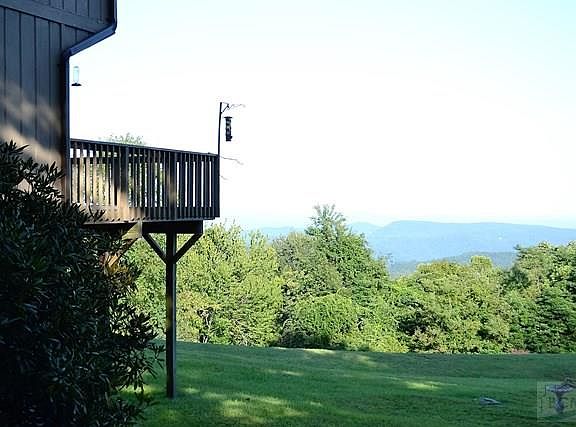 Oh, the views! Layered southeastern panoramas to Morganton, Lenoir, and beyond. At over 3600 feet elevation, this 4BR/2BA contemporary home with soaring cathedral ceilings and expansive windows has a stone wood-burning fireplace, hardwood floors, gas furnace, multiple decks, master bedroom and bath on main level. Full unfinished basement with high ceilings is plumbed for 3rd bath and has walkout sliding doors in place. Gingercake Acres attracts outdoor enthusiasts who hike or mountain bike miles of trails near and in the adjacent Pisgah Forest and Linville Gorge Wilderness Area. Neighborhood tennis, pool, and clubhouse for homeowner's use. Appliances and furnishings stay. Home inspection available. Property includes home and lot and adjacent buildable lot for a total of 4.9 acres.