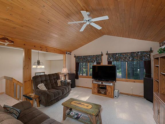 Nestled amongst the magnificent pines in the subdivision of Tranquillity Acres you will find this 3 Bedroom and 2 Bathroom home with a detached 2 car garage. The open concept floor plan with a wood cathedral ceiling in the Living Room and Dining Room creates the Northwoods atmosphere. From the Dining Room you can access the deck with amazing forest views. The main level also accommodates 2 Bedrooms and a Bathroom. The lower level provides a large family room, another Bedroom and an attached Bathroom perfect for extra space to relax or entertain with your family and friends. You must make an appointment to experience this Northwoods home in a tranquil setting.
