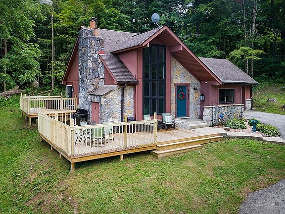 Looking for your own piece of paradise, here it is. Over an acre of land with mature trees and a creek at the edge of the property. The creek leads to a private 20+ acre lake, perfect for swimming, floating, and fishing. Fresh interior paint and new flooring throughout the home makes move in a breeze. Living room features vaulted ceilings with floor to ceiling windows and a wood burning fireplace. Updated kitchen and bathrooms too. You will love the finished basement, equipped with a bar and perfect for entertaining. Two large decks were recently added and allows you to enjoy the beautiful views surrounding this wonderful home.