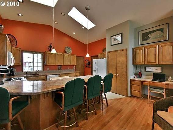 Convenient one level in Arbor Lodge. Bright+spacious great room+frml LR. Amenities abound in incl gas FP,vaulted ceiling,skylights,h'wood flrs,slab granite,central vac,central a/c,in-ground sprinkler syst,two car garage,covered patio. Convenient to MAX, New Season's and U of P.
