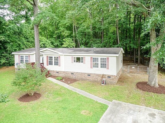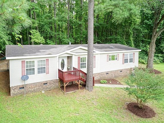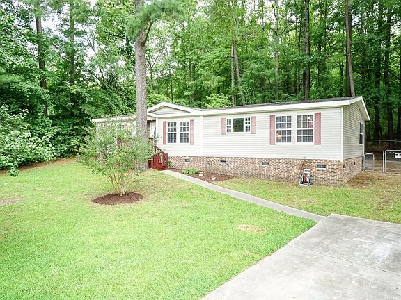 Great location in Wendell!! Manufactured home with 3 bedrooms, 2 full bath, surrounded by trees in the back on .50 acres. Great open floor plan from dining room/kitchen and living room perfect to entertain your friends. Living room has a woodburning fireplace. Master suite has large walk in closet and french doors that lead into your master bath with garden tub, double sinks and separate shower. Secondary bedrooms are very spacious. Laundry room is large with a storage area and shelving. Fenced backyard and deck.