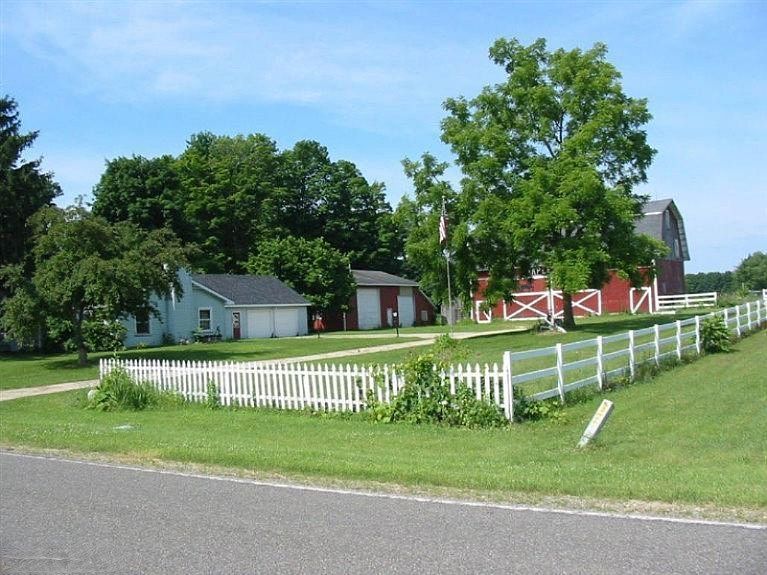 This family home offers an abundance of room for the family and in the country. Half the property is wooded, with very little under growth. An outside wood furnace that heats the house and the 34X59 pole barn. The pole barn has an 15' overhead door and one end has two 14' doors for driving through, also has a Case, industrial air compressor. The traditional barn is 30'X60'. Plenty of room for a garden. Approximately 2.5 acres more or less being split from a larger parcel #80-13-032-004-00. Measurements and age of house are approximate.
