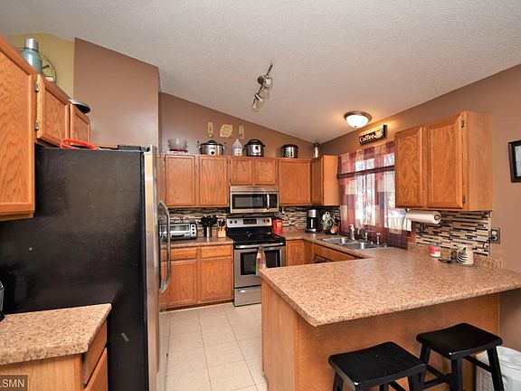 Beautiful 5 bedroom 2 bath split entry home with new in late 2018 roof, siding, gutters, deck and driveway, new A/C 2017, new garage door 2016, new windows 2015. Home was fully renovated 2010. Close to hwy 10. shopping, parks and trails. This home boasts vaulted ceilings, gas fire place in large family room, walk in closet, brand new exterior, what else could you ask for.