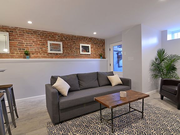 City Living at its Best Located in the heart of the Vibrant H Street Corridor and Capitol Hill. Only minutes away from major DC Sights. This 100+ Year Old Victorian Capitol Hill Rowhome English Basement was completely renovated in 2016. It served as an AirBnB until 2020 as a top listing in DC. *Brand New and very large gourmet kitchen with stainless steel appliances and a counter height peninsula/bar. Great for entertaining. * Exposed brickwork gives it warmth and preserves the historical character of the house. * Full bath with beautiful blue glass tilework and lots of light. Carrera marble floors. Adjacent to cute laundry space with stackable large Washer/Dryer and shelves for linens. *Living Room has built in shelves *Large primary bedroom that easily accommodates a King bed. *Beautifully landscaped front yard with seating and cherry tree. * One Block off of H Street NE- Where you will find may restaurants, bars, gourmet coffee, workout options, a Whole Foods, farmers market and more! *Walking distance to two major Metro Stations: Union Station (Red Line) and Eastern Market (Blue/Orange Line). * Easy Access to downtown DC via bus route and street car, 1 block away. * 1 Mile walk to US Capitol and National Mall. Perfect for a Hill staffer. *Several parks within walking distance: including a community center with new tennis facility, indoor gym, running track, and basketball court two blocks away, and Lincoln Park and Stanton Park are both 6 blocks away. Option available to rent furnished as pictured (barstools, couch, leather chair, king bed, wall art) Owner pays for water. Renter is responsible for Electric and internet.