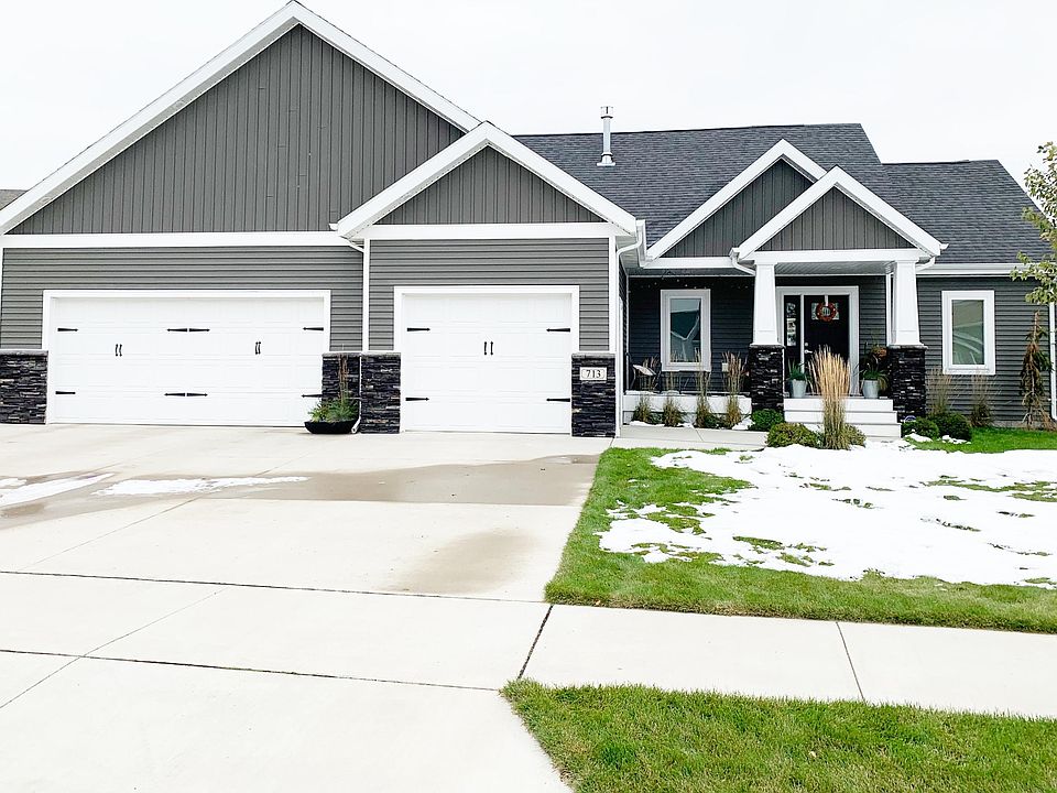 Stunning modern craftsman home with a breathtaking open floor plan - this home has it all! There are over 3,000 sqft finished with 5 bedrooms, 3 full baths, an oversized triple garage, large mudroom with heated flooring, front covered porch, a south facing covered deck (both maintenance free), and large fenced-in yard with a great a view! Call a Realtor for a private showing. There are 9 ft ceilings on the main with a vaulted ceiling in the living room. Modern gas fireplace and mantle, engineered hardwood floors, stainless steel appliances, quartz counters, eat-at island and modern custom lighting and fixtures everywhere. The master bedroom has a custom 'barrel' ceiling and oversized walk-in closet. The master bath has heated tile floors, double sink marble vanity, deep soaker tub and custom tile shower. There are 2 more bedrooms with large closets and a full bath with tile surround on the main, along with separate laundry/pantry. The finished lower level has a huge family room, a home theater area, large play or workout area, 2 conforming bedrooms and another full bath with tile. The triple garage is insulated and sheet rocked with tons of storage. Home includes many technology upgrades as well, including automatic lighting, smart thermostats, and a security system with camera. Listing Agent related to sellers.