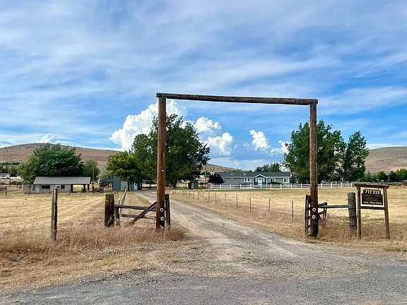 This beautiful Manufactured Home with majestic mountain views sits on 4.83 acres with multiple fenced areas perfect for animals, 4H projects & more! Amazing view of Thompson Peak awaits right out your front door! This 3 bedroom, 2 bath with a bonus room/office features a spacious open floor plan with skylights providing warm, natural light and beautiful new flooring. Say goodbye to clutter and hello to organized bliss with cabinets galore in this large kitchen featuring a convenient center island, and all new appliances. And after a long day, let the cares of the world melt away in your own jetted tub. Property has multiple outbuildings including a 24x36 shop with drive through doors and carports on each side. A 2-car garage with exhaust fan, 220 power, attached dog kennel and yet another attached carport. There is a also a stand-alone carport next to the home. Plenty of room for all of your vehicles, toys and hobbies! But that's not all!! There is a also a charming, rustic bunk house with two rooms to transform into whatever you'd like and the most amazing vintage windmill that pumps water, but needs some repairs to work again. RV hook-ups make it perfect for those extra guests to come and stay. The small orchard of fruit trees in the backyard, and grass area with sprinklers are perfect for summer get-togethers. Don't miss out on the chance to make this extraordinary property your own. Come see for yourself today!