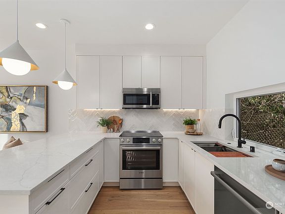 Welcome to The Residences At Madrona. A stunning collaboration of Vandervort Architects descerning design along w/ Coombes Development's commitment to quality home building. The townhome presents a strikingly bright floorplan & features. Classic hardwood floors greet you along with main floor guest bedroom/home office with ensuite. Adorable living room & peninsula kitchen w/ Abodian cabinets, modern tile backsplash, quartz counters and Bosch appliance package. Expansive 3rd level primary suite w/ large picture windows, Mini-split heating & AC, double closet, dual-vanity bath w/ heated flrs & walk-in shower. Dedicated parking is EV ready. An amazing location to Madrona Park, quaint shops & restaurants for the vibrant Seattle lifestyle