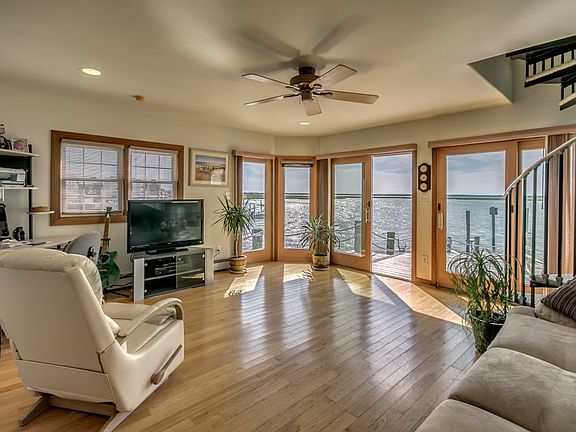 This exclusive, yet casual Bayfront home on Beach Creek has everything that waterfront living offers including spectacular sunsets and incredible water views. Enjoy boating, kayaking, paddle boarding and all water sports right out your front door. There are 2 boat slips for your boats with easy access to all the waterways. The spacious multi-level decks are a front row seat to boating, star gazing and award winning sunsets; for sunning, grilling, socializing and just relaxing it just doesn't get any better than this! The first floor is an open floor plan with a kitchen and living area with hardwood flooring. Also on this level is a full tiled bath with a Jacuzzi tub and a laundry closet. The second level is a large master suite with unparalleled views and a large 3 piece bathroom. The third floor with breathtaking views is currently another spacious bedroom. There is central air and efficient gas hot water baseboard heat. Each floor is individually zoned for air conditioning and heat. There is limited waterfront property so take advantage of this valuable opportunity to own your piece of waterfront paradise!