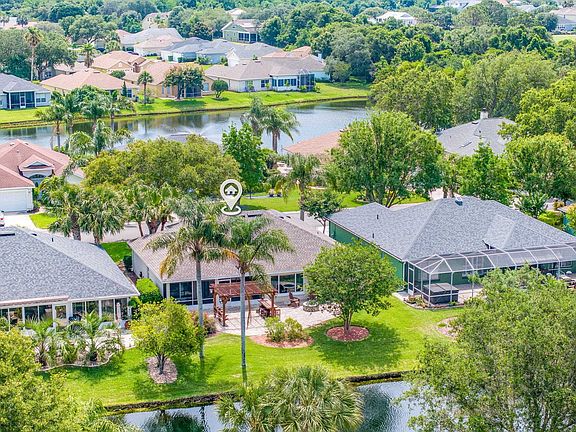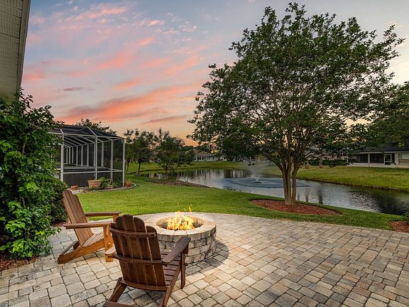 Amazing outdoor living as you take in the tropical lake views from your fantastic paver patio and screened lanai of your Anastasia Island home. Concrete block construction with flowing design that is light and bright, and provides split floor plan for ultimate privacy with room for guests. Beautiful views from the spacious living area, formal dining, and kitchen with large pantry and breakfast area. You will love the large owners retreat with access to the screened lanai and an ensuite bath with dual sinks and tiled shower. Outdoor paver area includes pergola with seating and firepit - perfect for entertaining or quiet nights at home. Beautiful wood engineered and tile flooring in the living area, 2020 roof and A/C, 2023 hot water heater, and newer microwave and range with air fry/convection oven. Most windows replaced with impact glass windows in 2021 and hurricane fabric coverings provided. Preferred X Flood Zone here! Move right in and start living the Florida lifestyle. Enjoy the great neighborhood amenities by relaxing at the pool and cabana. Also have tennis, basketball and a playground. You will love the island life and being a part of St. Augustine in this great home. Great location on Anastasia Island within Commodores Club where you are close to the beach, downtown St. Augustine, restaurants and more.