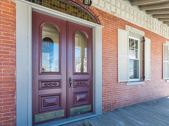 Warm brick fireplaceStainless steel appliancesLight and bright spaceBrick wall with built-insArched brick entryEat-in kitchenWhite cabinetry