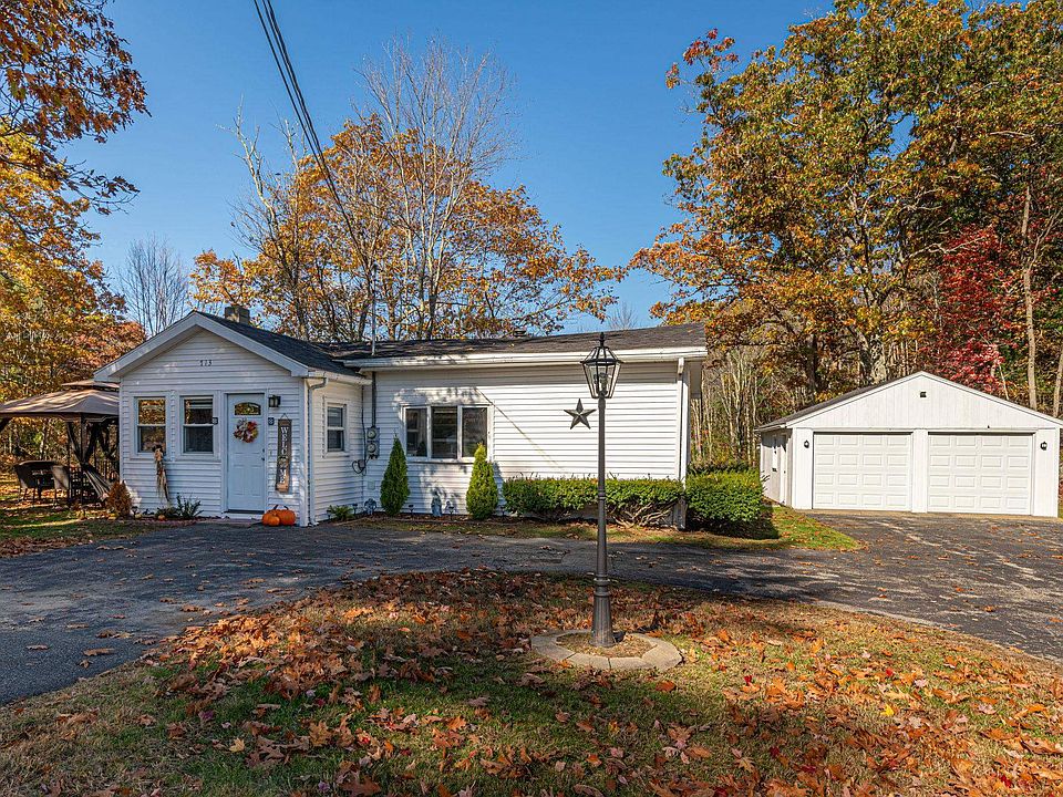 Delightfully Charming ranch on 3 acres! Centrally located in highly sought-after Auburn, this 2BR/1BA home makes one floor living nice and easy, tidy landscaping, and a beautiful backdrop of mature trees. Styled for functional living, the interior features an openly flowing traditional floorplan, a contemporary color scheme, warm hued wood floors, spacious kitchen with dining area and a cozy living room. All bedrooms are generously sized with dedicated closets, while the primary bedroom offers lots of natural light. Other features: detached oversized garage, huge paved driveway w/potential RV parking, laundry area, less than 7-miles to shops, dining, Dunkin Donuts, Rt93&Rt101, schools and more!