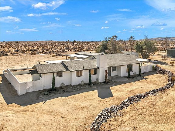 Welcome to 713 Delgada Ave,“Glennstone Ranch”, a beautifully renovated desert oasis in the heart of the coveted Yucca Valley. This 3 bedroom, 3 bath stunning property has been thoughtfully remodeled to offer modern comfort while preserving its natural charm. Step inside to find fresh, new paint and elegant wood tile flooring throughout, creating a seamless and inviting atmosphere. The brand new custom kitchen is a chef's dream, boasting all new stainless steel appliances, sleek stone slab countertops, and custom cabinetry. Step into the 700 square foot additional bonus room that can be used as a game room or entertaining space. Beyond the interiors, this property offers significant upgrades, including a new 5 ton central AC system, all new electrical throughout, including light fixtures, outlets and switches. Additionally, this home has a complete centrally alarmed burglary and fire systems throughout, all-new plumbing fixtures, faucets, showers and a brand-new roof, ensuring peace of mind for years to come. This home has been extensively remodeled with no expense spared. Set on close to 2.5 acres, this fully fenced expansive lot provides ample space, including a chicken coop, oversized garage and endless possibilities for outdoor living, entertaining, and plenty of room to add a large pool. This property has so many options for future expansion to include adding additional dwellings, horses or R.V. parking. The detached three-car garage provides ample space for vehicles and storage, with an unfinished separate casita or mother-in-law quarters, making this a truly versatile home that you can live in and enjoy or utilize as a profitable Airbnb. Just a short drive to the Palm Springs area, Joshua Tree National Park, Giant Rock, one of the largest free standing rocks in the world and some great restaurants like La Copine and music venues like Pappy and Harriet’s in the charming Pioneertown. Joshua Tree strip with its farmers market, boutiques and art galleries are just some of the highlights of the nearby area. Experience the serene beauty and endless potential of this Yucca Valley gem – your perfect desert retreat awaits.