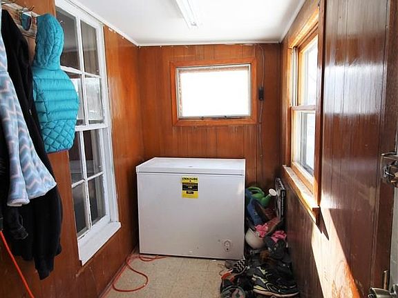 If you are looking for an affordable home look no further! 2 bedroom, 2 bathroom ranch-style home with steel siding, an enclosed front porch, 1 stall detached garage, large fenced in backyard with a cement patio and a shed! Hardwood floors in both bedrooms & living room along with a built-in hutch in the living room. There is a full basement that is unfinished and can be finished off for extra living space including another bedroom and a family room. Refrigerator, electric oven and dryer are included. Convenient location a block from downtown, the city park and bike baths along the river!