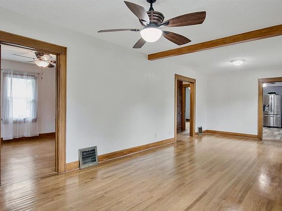 JUST A DARLING BUNGALOW HANGING OUT OVER HERE... Updated and move in ready! Newer roof, vinyl siding, and attached two car garage! Interior is SO CUTE with hardwood floors throughout, ceramic tile in kitchen. Kitchen has nice updates and includes appliances! Sunny, main floor laundry room off kitchen and garage. BUT>>>>> Here is the GREAT part! The seller had a brand new basement poured!! No old cellar basement here! This is like new construction! 10 ft ceilings! Added egress windows and plumbed for a bath! What an opportunity for equity! Backyard is fully fenced with built in fire pit, two storage sheds, covered patio and an awesome garden spot!
