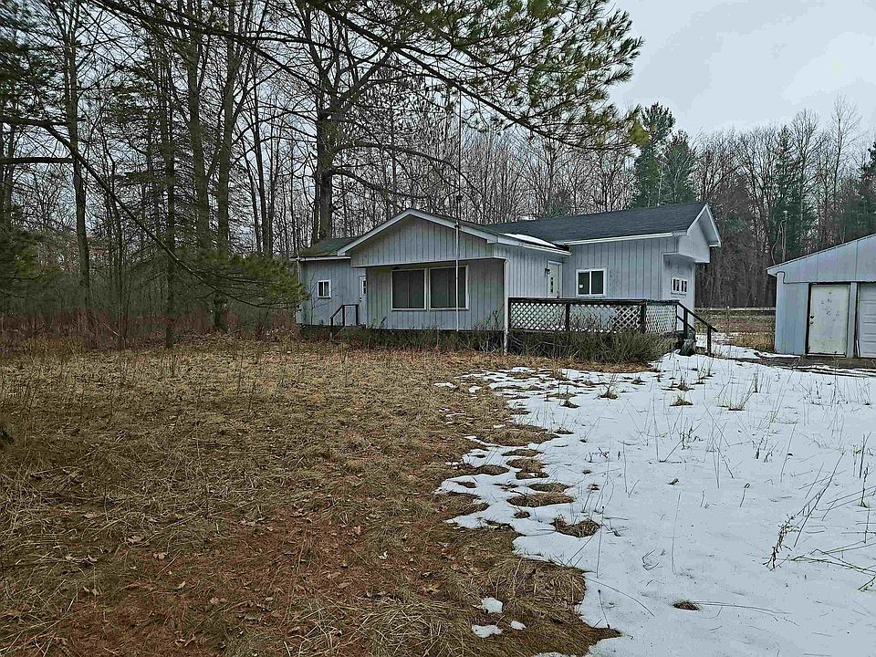 Two and a quarter acres fronting on M-30 with a 1960 manufactured home, a deep two car garage and a little red barn. Private with a circle drive and a newer 5 inch well, windows, door, furnace, bathtub, vanity, furnace, roof & carpeting Irregular shaped property. Seller will view all offers on Saturday March 25th @ 4PM