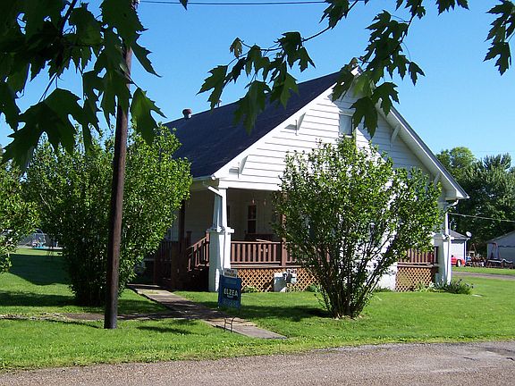 PRICE REDUCED for this Bungalow style home with 6 rooms and a 520 sq. ft. unfinished attic. Main level with 1,100 sq. ft. can have from 1 to 3 bedrooms, living room, large kitchen, bath and utility room. Features hardwood floors in 4 rooms, refrigerator, gas cook stove, freezer, washer and dryer, replacement windows, central heat & air and 3 ceiling fans. Detached 19' x 25' garage with a 10' x 21' covered patio area. Two covered front porches with a porch swing. Located on a 120' x 120' corner lot. 2015 taxes $424.29.
