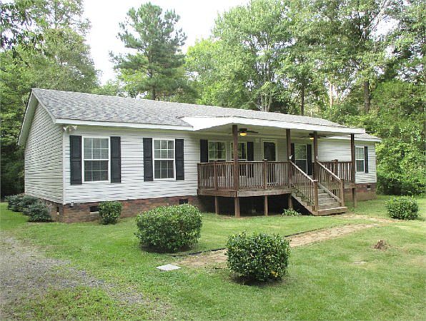 This is a custom modular home nestled on 1+ private acre lot! Ready to move in! Enjoy your privacy on the rocking chair front porch. Formal LR greets you as you walk thru the front door. Huge kitchen with lots of cabinets. GR boasts a stone stacked wood burning fp. Master suite with 2 sinks, garden tub and sep shower! 2 additional br's with large closets. Ceilings fans in almost every room! Eligible for 100% USDA financing per the USDA website.