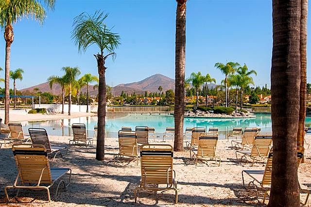 Beautiful 2 story 2BR, 2 1/2 BA. Eastlake Condo, located across from the Lake & Beach Club, Quiet Corner building w/ a park like setting as a front yard. No neighbors in rear. NO MELLO ROOS! 2 spacious Master Bedrooms with bathrooms, Hard wood Floors, Kitchen w/ maple cabinetry & corian counter tops. Pay no Water & Trash. Washer & Dryer included, Air Conditioning, One car detached garage and one assigned parking. Near Eastlake elementary, MS & HS. Enjoy walks around lake & beach.