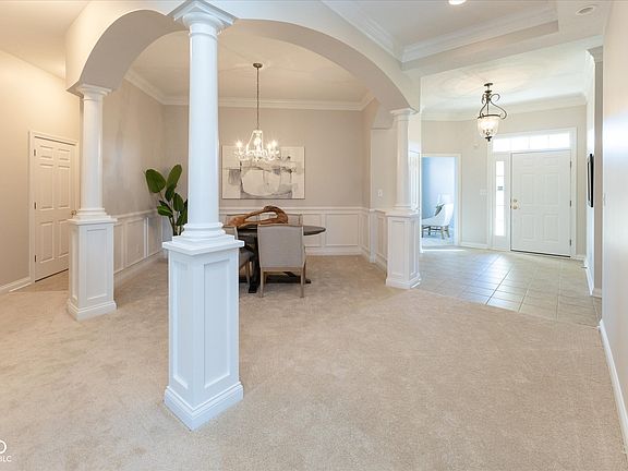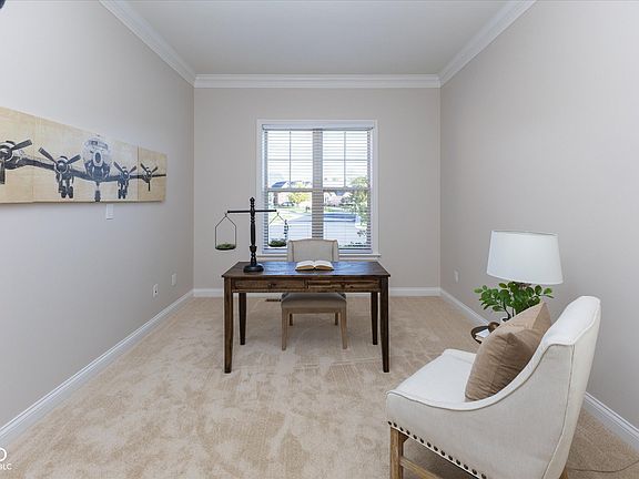 Stunning one owner home 3bdrm + Office offers beauty, tranquility & privacy, low maintenance living with lawn care & snow removal by HOA. This immaculate home has wonderful updates & extra custom details throughout the home. Open concept floor plan, high ceilings, Great room with Gas Fireplace & custom built-ins w/ an abundance of natural light. Gourmet Kitchen w/ quartz countertops & island bar seating plus Breakfast nook area. Spacious Dining room & Den/Office. Primary Bdrm on main w/ luxurious Walk in Shower, double vanities & enormous walk in closet. Additionally on the main floor is a large 2nd bdrm + Laundry room. Upstairs is 3rd bdrm + 1/2 bath that has shower rough in. Huge Attic space for tons of storage, just imagine the possibilities. Beautiful large back deck w/ automatic awning, perfectly situated w/ views of the spacious common area. A perfect location in Carmel, simply beautiful!