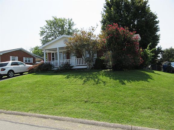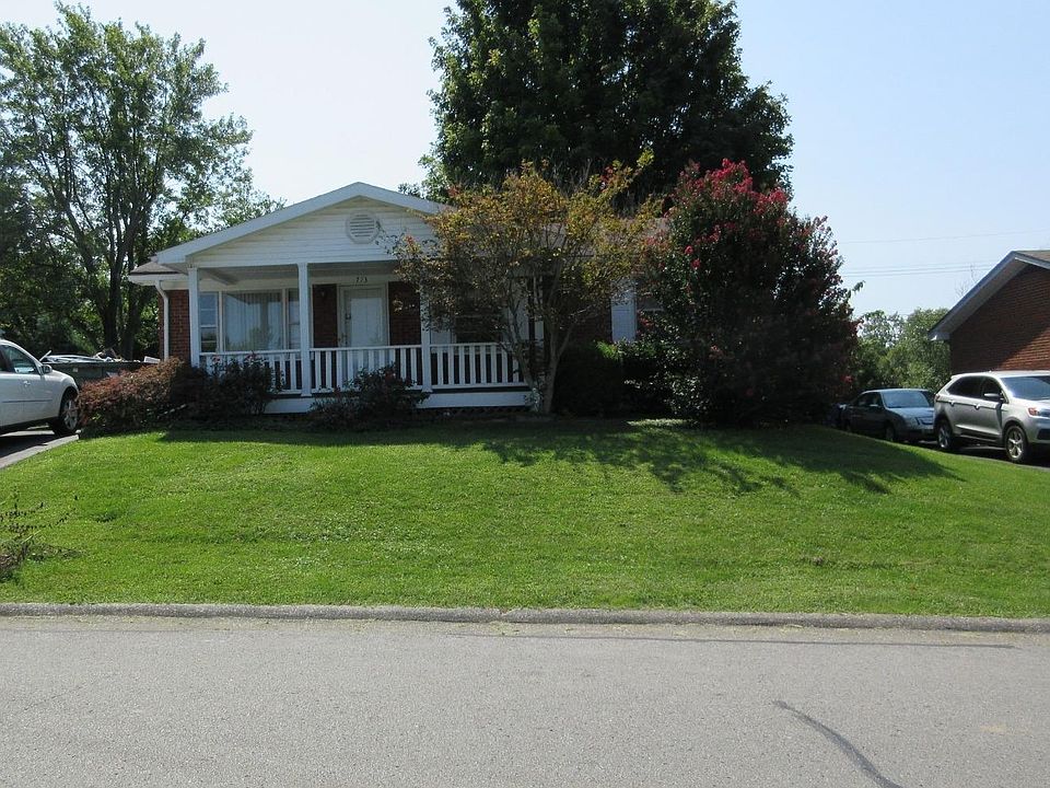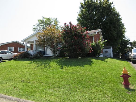 This all brick ranch needs love, hardwood in living room and bedrooms, nice size back yard that is fenced, large covered front porch, two storage buildings, priced to sell AS IS