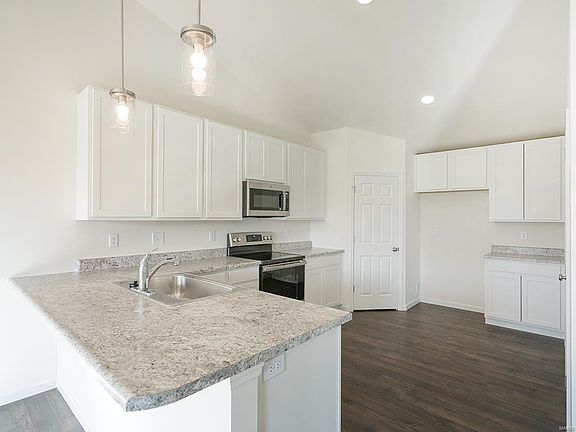 This McBride Homes Hickory ranch 3BR 2BA market home will be move in ready by early 2023! This open floor plan features wood laminate flooring and vaulted ceilings in the main living areas. Open kitchen with extended peninsula for breakfast bar open to dining area, level 4 painted white 42 inch tall kitchen cabinetry, stainless steel GE appliances, large single basin sink with pull out spray faucet, and corner walk-in pantry. Master suite features a large walk-in closet and an upgraded master bath with adult height double sink vanity, large tub with window, walk-in shower, and linen closet. ¾ bath rough in at basement. Main floor laundry, upgraded lighting, and 6ft windows. Fox Creek is a beautiful new construction community just minutes from Gravois Bluffs. Enjoy peace of mind with McBride Homes’ 10 year builders warranty and incredible customer service!