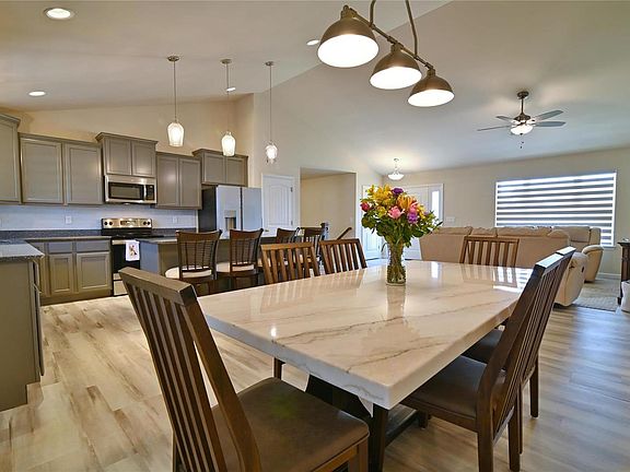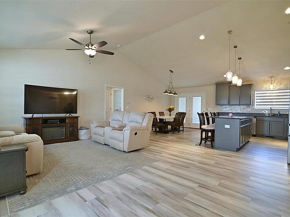 Welcome to your new home. This home is only 4 years old and has many extra features to offer. The house has Split Bedrooms with the Primary Bedroom on one side of the house and the other 2 bedrooms on the other side of the house. The 2 bedrooms have a pocket door that can be closed off from the rest of the house for privacy. The Living Room/Kitchen/Dining Room area has vaulted ceilings and all of the Bedrooms have 8 Ft Ceilings. The Kitchen has an Extra Large Quartz Island that can be set up with Bar Stools for eating. The Kitchen Counter Tops are Quartz and the Kitchen has a Backsplash. Staggered Kitchen Cabinets with Crown Molding. The Primary Bedroom closet has a professionally installed Closet Organizer. Primary Bedroom is Extra Large. The backyard is great for entertaining. The back yard has a Covered Patio with a Ceiling Fan. The back yard has extra concrete for tables and chairs. There is an Electric Remote Controlled Retractable Awning. Ceiling Fans throughout. Must See Home!!!
