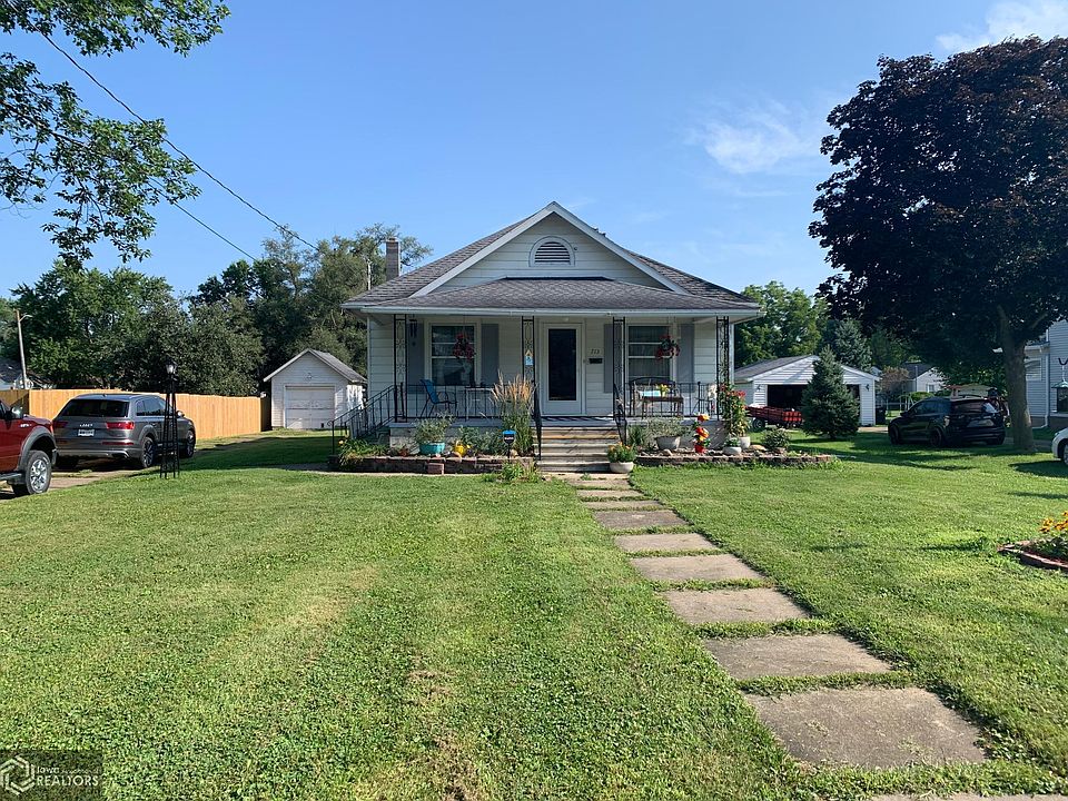 This well-maintained 3 bedroom, 1 bath bungalow in a great area on the south side is a must see. It features a one-car garage, a large backyard and covered back patio with plenty of room for outdoor entertaining. In front, the large covered porch makes the perfect spot for morning coffee and bird watching. Inside, the house features a large, updated cottage kitchen with loads of storage, and an expansive, light filled dining room. The 3rd bedroom space is currently being used as a main-floor laundry and home office, but can be easily converted back into a bedroom. Additional laundry hook-ups in the full, unfinished basement provide flexibility to move the laundry downstairs. Updates include brand new gutters, a newer A/C, new water heater, new furnace, and updated electrical. Call an agent to schedule a showing!