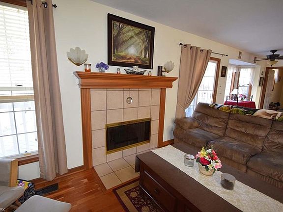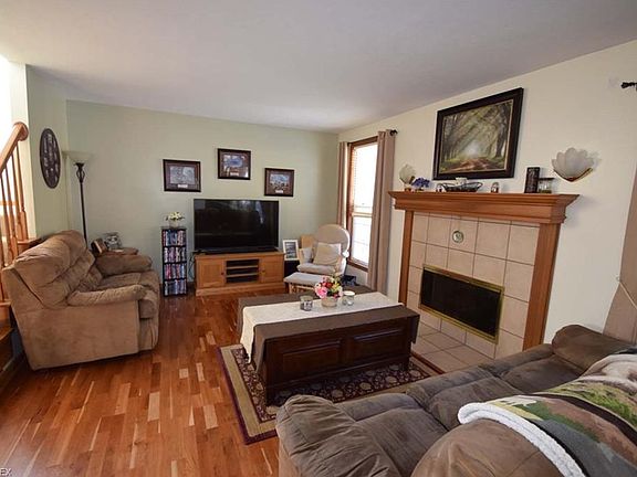 Light and bright house on a one-half-acre plus landscaped lot. Open plan featuring a cozy gas fireplace and real cherry hardwood floors. Great room concept lets you be with your family while preparing meals. Forma dining room, first floor office and first floor laundry. Master bedroom with cathedral ceiling and two walk-in closets and master bath has a jetted tub plus a separate shower. The 12-course basement has plumbing for another bath. Kitchen appliances included. New roofing in 2014. Water heater is a rental ($18.09/month). Water softener is disconnected. Gardeners will love the terraced lot and the 16X22 building with electric, water and second floor storage. Large 12X26 deck overlooks the private back yard. This home is move-in ready and qualifies for zero down Rural Development financing. Gas Average $74.92/mo. Electric Average $203/mo. Water/Sewer Average $100.51/mo. Trash $18.75/mo.