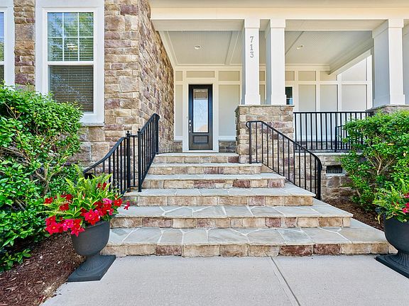 Prominently poised on an expansive corner lot in one of Cary's esteemed luxury communities, 713 Greyhorne Way exudes the essence of new, sparing you the wait. Upon entering, a grand foyer showcasing exceptional millwork establishes an everlasting first impression. French doors introduce a versatile main floor flex space which could be utilized as a bedroom with ensuite bath or private home office. Stunning coffered ceilings and a wall of windows lures you into the heart of the home to witness architectural beauty seamlessly merging with functional spaces. A gourmet kitchen crafted for the culinary entertainer is adorned with staggered white cabinetry, beautiful countertops and stainless appliances. Upstairs, you'll find sanctuary in the secluded primary, where you can unwind in the soaking tub or organize your belongings in the boutique-sized closet. Spacious secondary bedrooms access gorgeously appointed bathrooms and the oversized bonus, flooded with natural light, offers endless possibilities for use. Seeking a secondary office or cozy reading nook? An optimal loft space provides just that! End each day relaxing on the serene screened porch, an ideal spot to enjoy a refreshing beverage while overlooking a flat, grassy backyard perfect for outdoor gatherings and play. Residing in Greystone comes with perks, which begin right behind the home...a greenway path meandering to the neighborhood clubhouse featuring a large pool, playground and volleyball court. A pristine 3 car garage, top rated schools, easy access to the entire Triangle - what more are you waiting for? Welcome home!