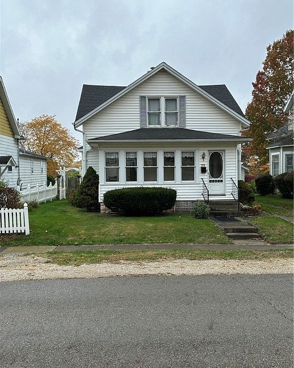 Welcome to 713 Highland Blvd. This home says "home" all over it. It is cozy - just the right size - Updated kitchen with new countertops and sink plus newer appliances. Good size dining room and living room. Upstairs you will find 2 bedrooms and 1 full bath. Basement has been B-dried and has washer and dryer hookup and an older shower - great for a bathtime for Fido. On the front of the home is a glassed-in sunporch. Great to sit and relax. Back of the home is a deck with a clear view for miles - perfect for that evening sunset. Large flat back yard. 2 sheds - the bottom shed is super cute and would make a great man cave or she shed, attached is a little arbor that would be perfect for a swing. Upper shed is for storage. Seller is selling "AS IS -WHERE IS." Newer windows except for 3 (2 in front bedroom and 1 in bathroom) Front bedroom needs some love and paint. Both bedrooms are good size with large closets. Fireplace has not been used. Recommend getting it professionally inspected.