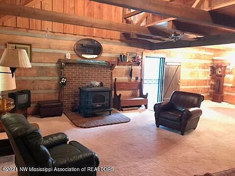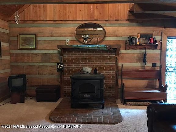 This is a REAL LOG HOME with over 2000 sq feet, 3 bedrooms and 2 baths. The spacious living room has a high ceiling, wooden beams and a wood burning heat-stove. The thick logs are exposed on the interior and exterior of this unique home. The kitchen is fully furnished. There is a double garage. Come, sit on the front porch, under the magnolia trees, and listen to the rain fall on the tin roof!! You will be only minutes to the boat ramp.