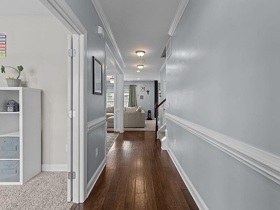 Located in the desirable Grays Creek subdivision, this home features a welcoming living room with gas log fireplace and built-ins, stylish kitchen with granite counters, stainless steel appliances, and pantry. A dedicated office adds flexibility. The spacious master suite boasts a dual vanity, tub and separate shower. Third floor features a walk-up unfinished attic with approx. 560 sqft of potential. Energy-efficient solar system included. The fenced backyard is complete with patio, play equipment, and shed—ideal for relaxation and entertaining.
