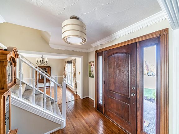This gorgeous home is located in the desirable Copperfield neighborhood on a large corner lot.The pride of ownership shines throughout this beautifully renovated home starting at the new front door. Upon entering the home you are greeted by gleaming hardwood floors on the entire main level except the kitchen which has ceramic tile. In the spacious eat in kitchen there are stainless steel appliances, corian countertops with a large center island, pretty backsplash and new, freshly painted oak cabinets with lots of storage space. The cozy den has a fireplace, built in shelves and a door to the deck. Also on the main level is a formal dining room, formal living room and renovated half bath. All light fixtures have been updated throughout the home.
