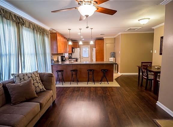 Precious home on a quiet, tree lined street in a Metairie location convenient to shopping, parks, and entertainment! The kitchen is very large with tons of counter and cabinet space. The den & kitchen are completely open concept. The backyard has a detached garage with rear yard access, a cute patio, and lots of grass to play! Do not miss this adorable home with lovely updates, including the kitchen, bathroom, and wood flooring.