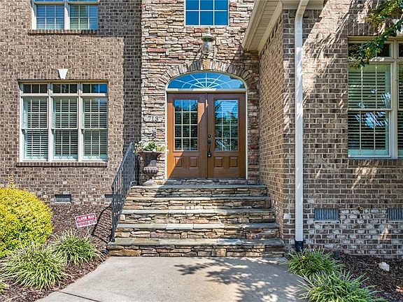Welcome to Mill Pointe where elegance meets comfort in this beautifully appointed 4-bedroom, 3.5-bath residence. Step into a grand two-story foyer flanked by a sophisticated home office with coffered ceiling and a formal dining room, perfect for entertaining. The soaring two-story living room, anchored by a gas-log fireplace, flows seamlessly into the kitchen featuring a large island, granite countertops, gas cooktop, wall oven, pantry, and a sun-filled breakfast area overlooking the private backyard. The main-level owner’s suite is a retreat of its own, complete with double vanities, a jetted tub, separate shower, and an expansive walk-in closet with custom built-ins. Upstairs offers a spacious guest en suite, two additional bedrooms sharing a hall bath, and a bonus room over the garage. Outdoor living shines with a covered porch that opens to a fenced, private backyard ideal for gatherings or quiet evenings. This thoughtfully designed home blends luxury details with everyday function