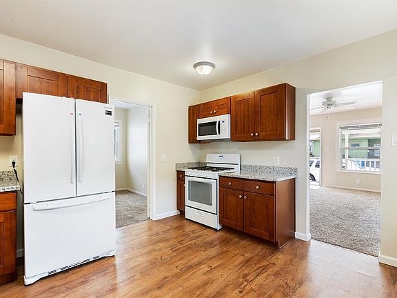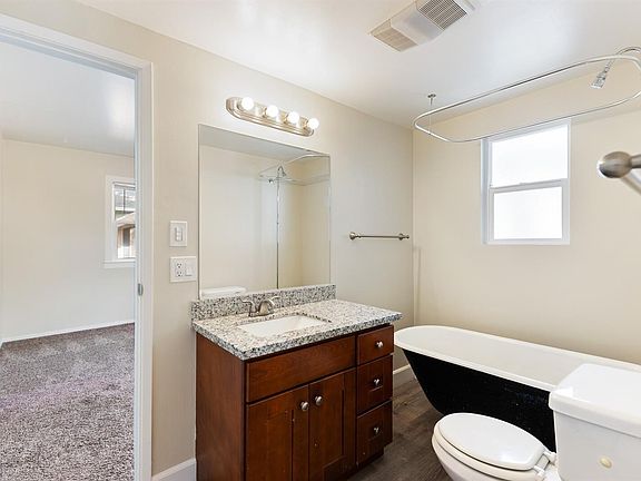 Historic Burbank Gardens neighborhood, inviting community feel. Just over half a mile to DT Santa Rosa, the Santa Creek trail, restaurants and breweries. Quick freeway access and schools. Updated ktichen with granite countertops, custom cabintery, wide plank laminate flooring, Gas stove and skylite. laundry hook up new, carpet and paint. Jack and Jill bathroom with antique clawfoot bathtub, new vanity and flooring. Private storage closet in back. New deck in back perfect for summer BBQ's shaded by beautiful redwood tree. A must see for your self. Street parking and shared drive way parking. Laundry Hook up. Please apply!