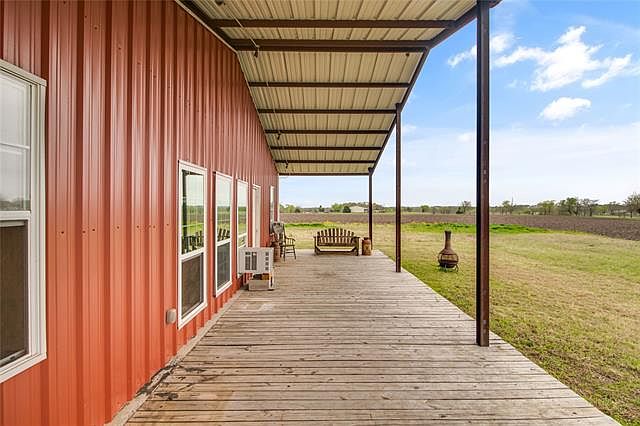 Soak in the country views from the large covered front or back porch in this three-bedroom barndominium, nestled on 24.87 acres. Great for entertaining! Enjoy a large open-concept great room with a barn door leading to the mud room & laundry room with concrete floors throughout. Concrete slab outside for a potential carport. A portion of the acerage is partially cultivated for hay production until December of this year. Possibilities are endless with this one, just waiting for you to call home! Located nearby Bardwell Lake and Texas Motorplex.